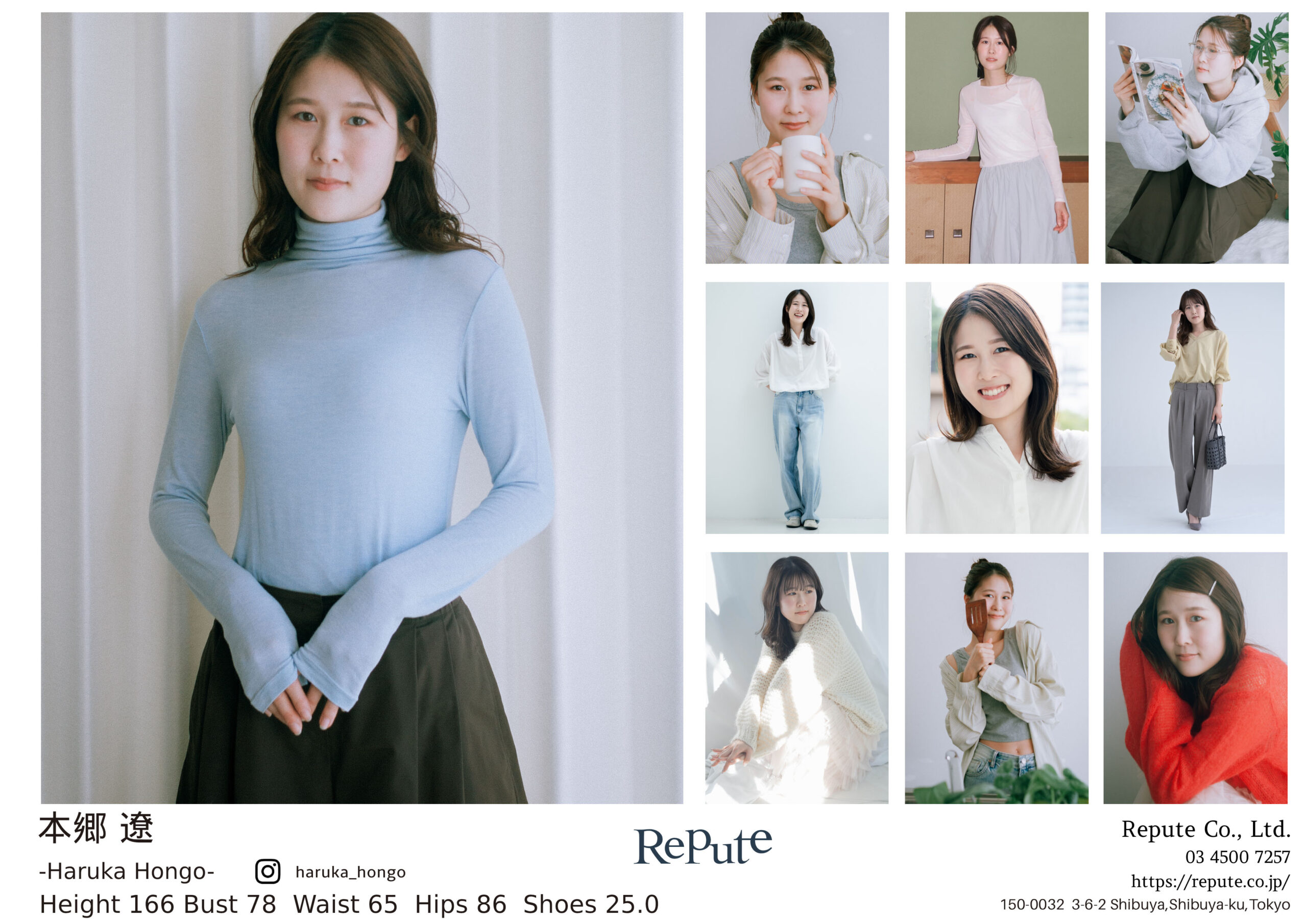 Height 166 Bust 78 Waist 65 Hips 86 Shoes 25.0