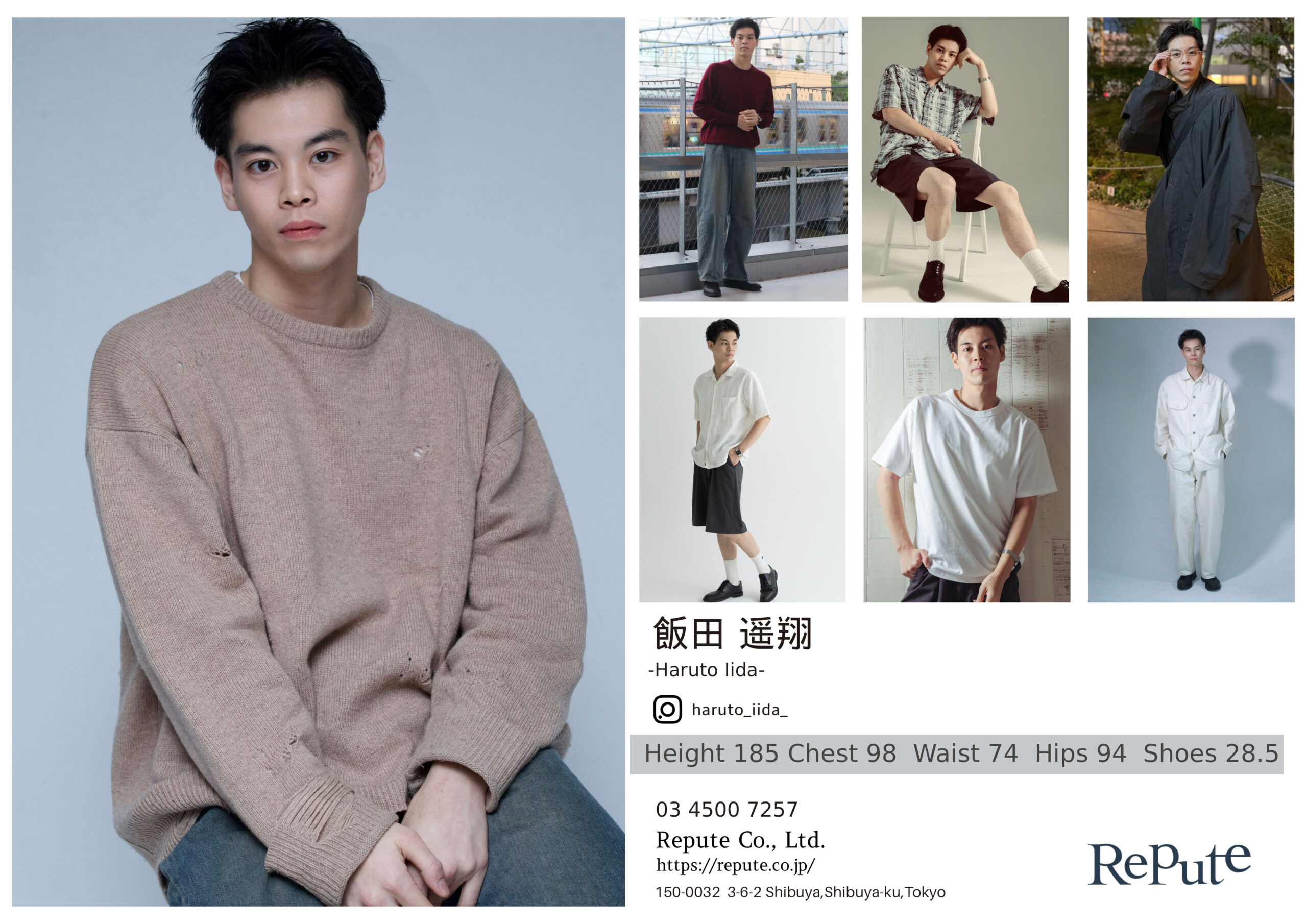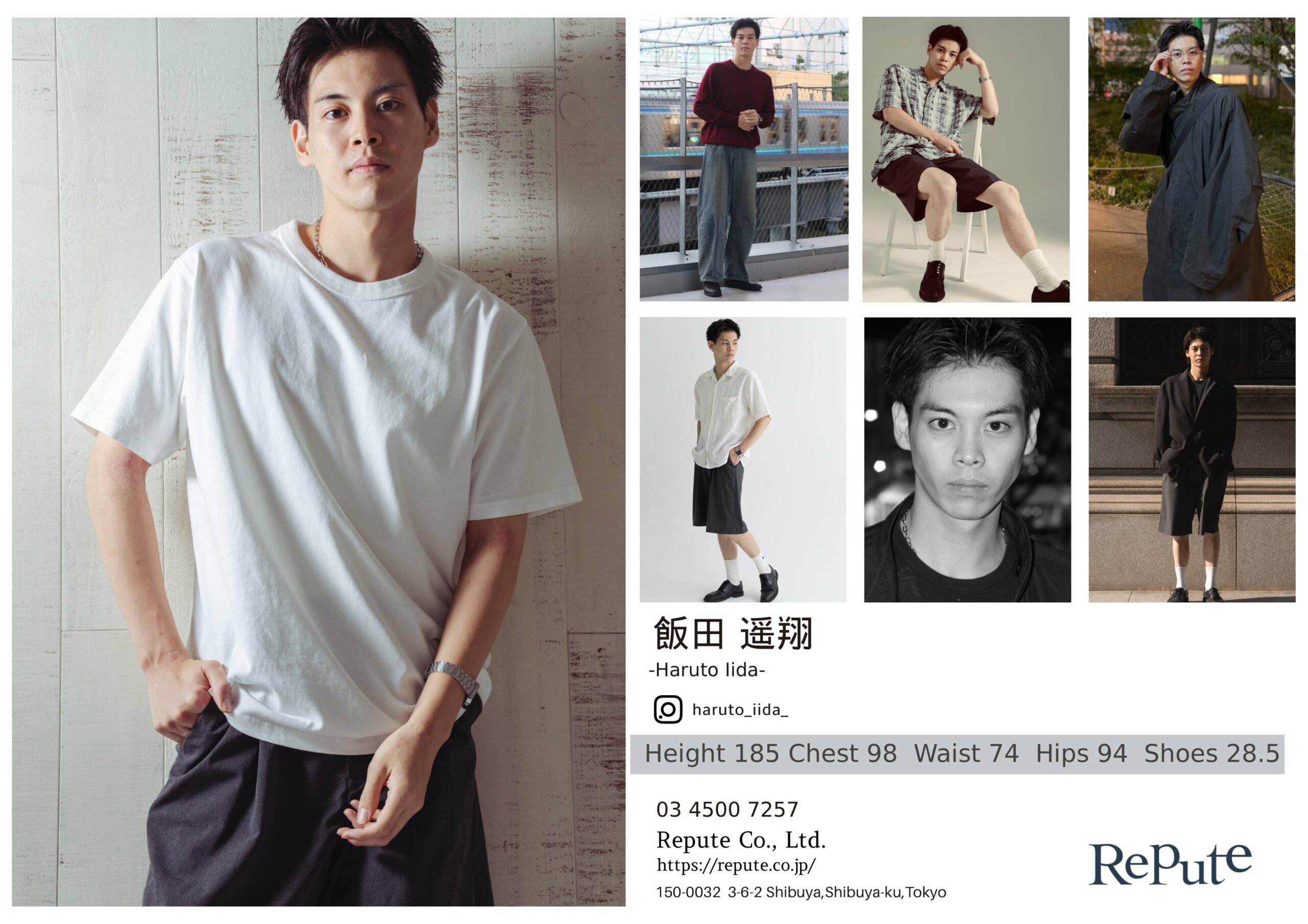 Height 185 Chest 98 Waist 74 Hips 94 Shoes 28.5